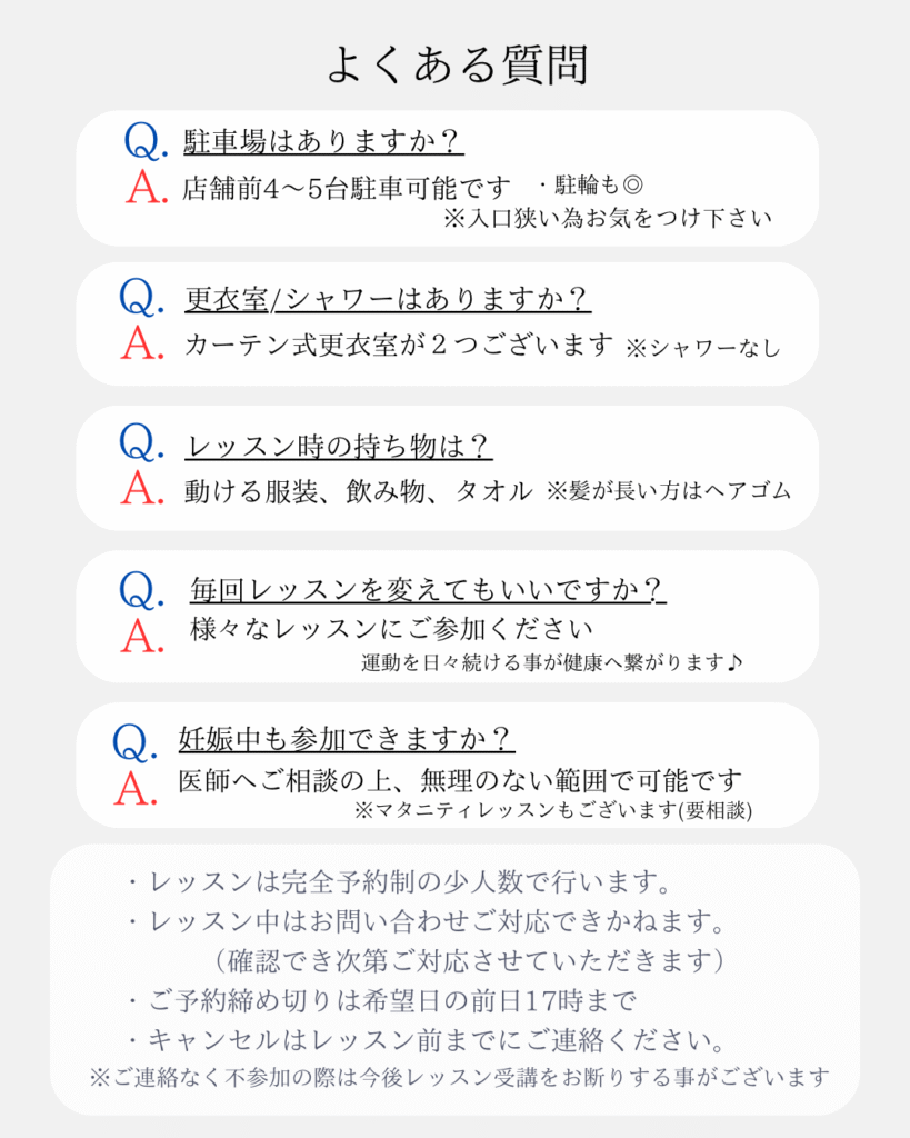 運動を身近に「楽しんで健康へ」をコンセプトに 様々なレッスンや老若男女問わず皆様が参加しやすいスタジオ作りと動ける身体へ導くレッスンに努めています。